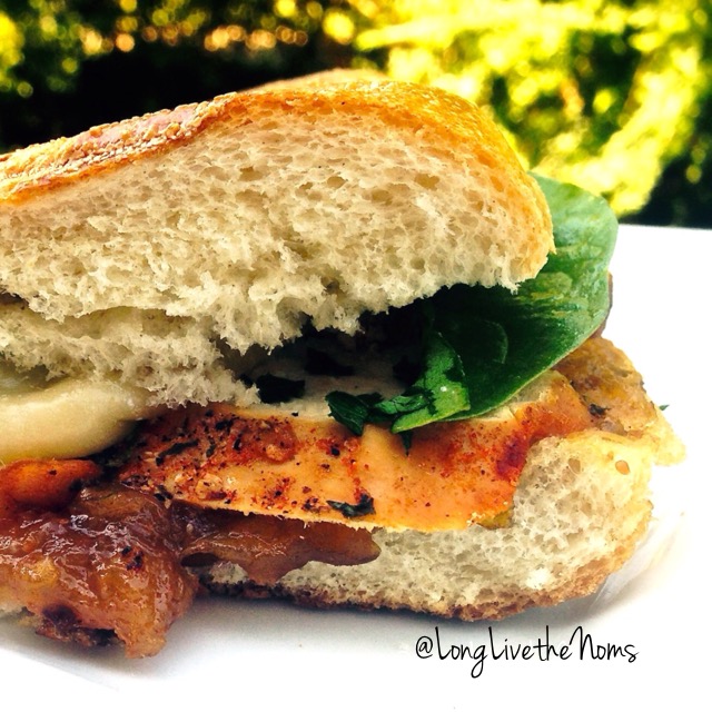 This is my new favorite way to use leftover grilled chicken breast. Of course, it is good enough to make a fresh batch for, too! The flavor combo going on here is amazing. If you’re like me and love the taste of sweet and savory together, this will be sure to please your palate. I generally think of panini and other sandwiches as a lunch food, but I had this for dinner last night, and I was very happy. This recipe makes 1 sandwich. Double, triple, quadruple as needed. 😉